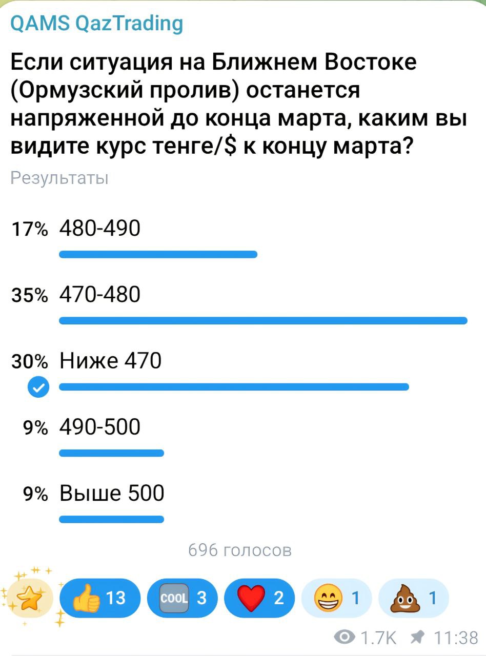 18.03.2026Курс ₸/$ в ситуции напряженности на Ближнем Востоке к концу марта будет в коридоре 470-480 или ниже 470 - итоги опросаПодробнее